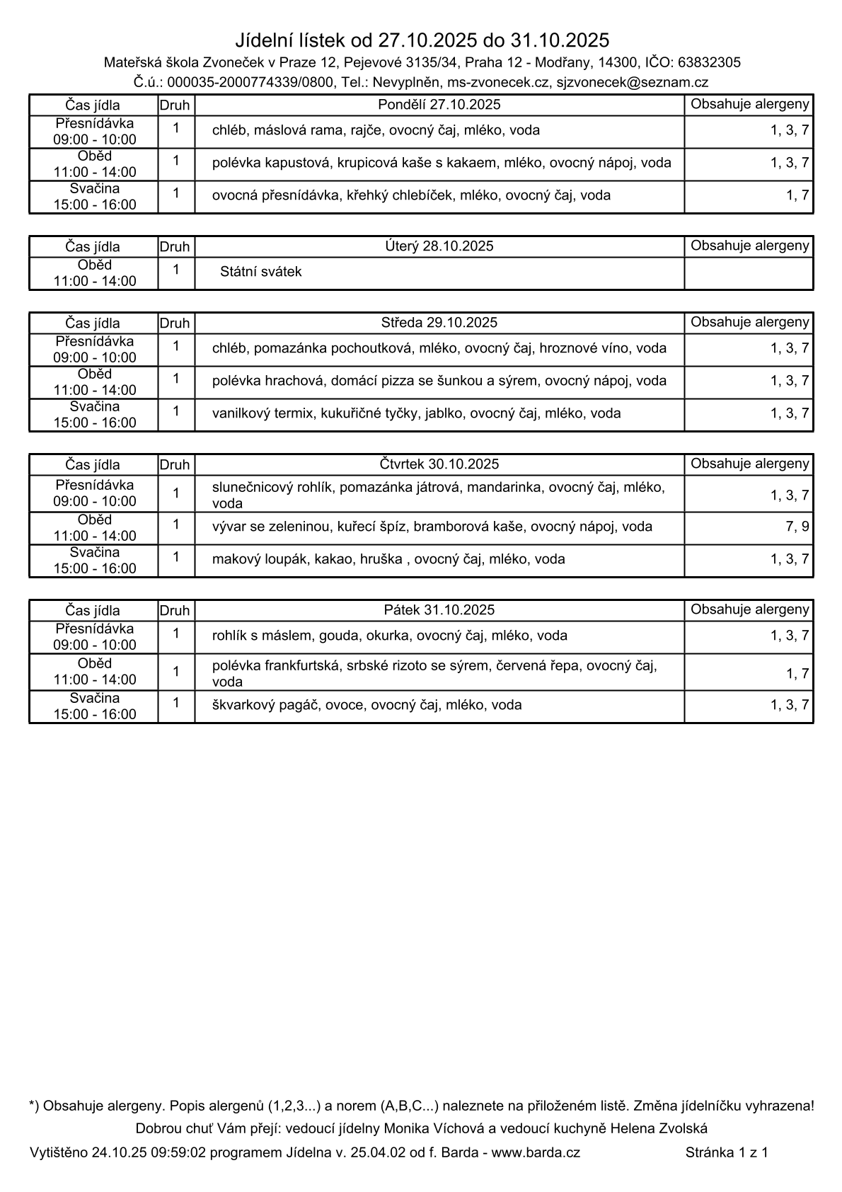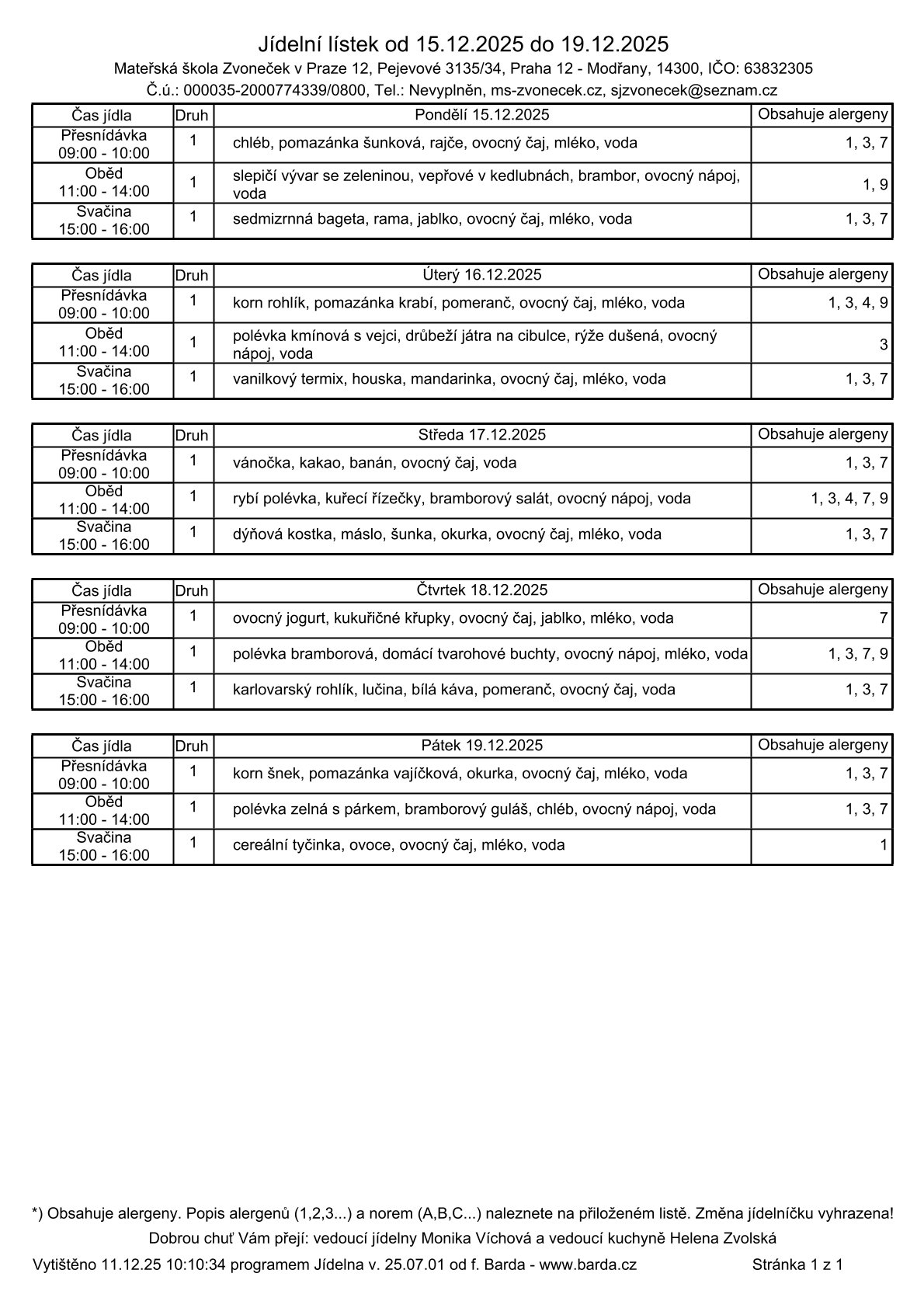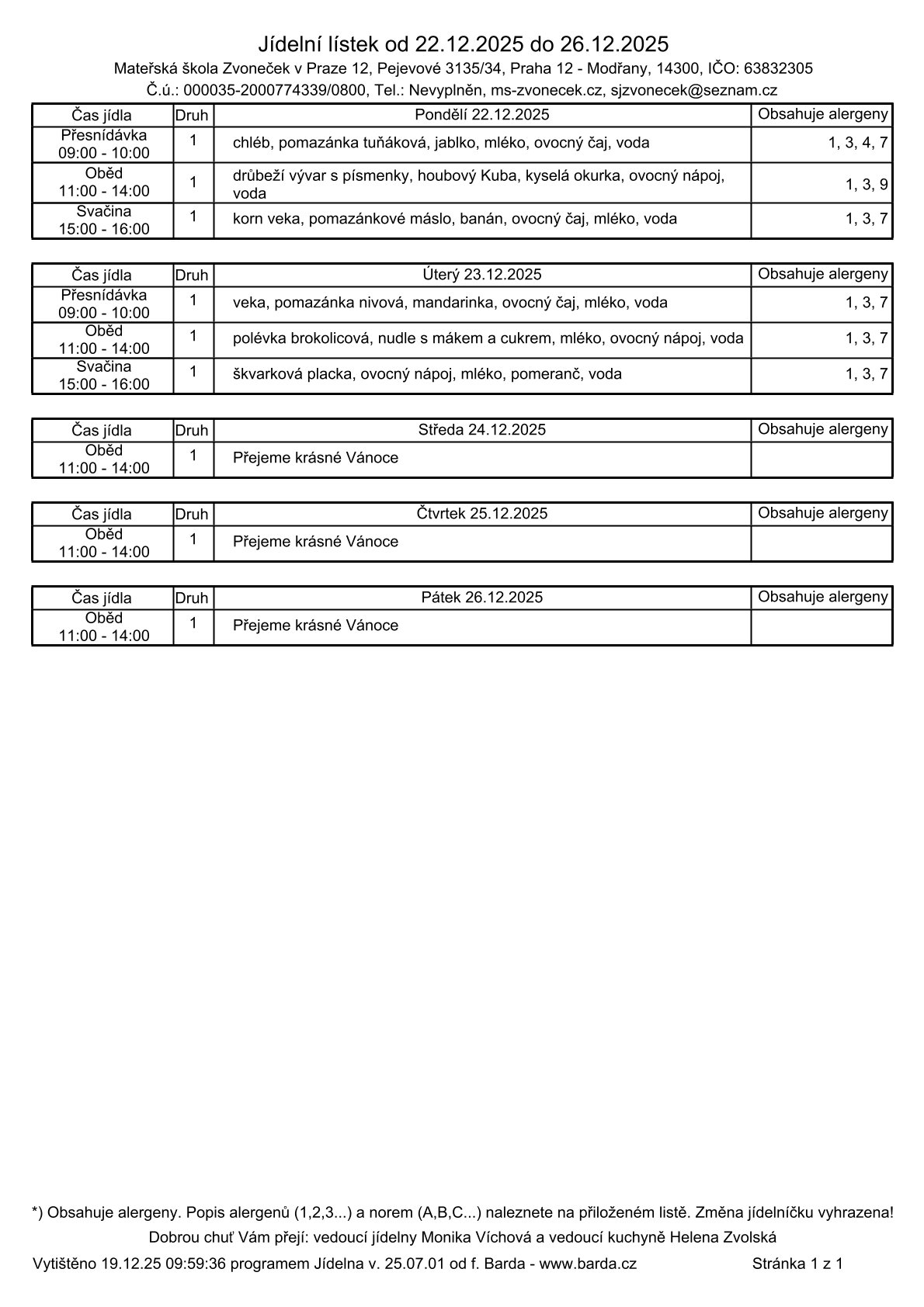 Vánoční provoz 2025