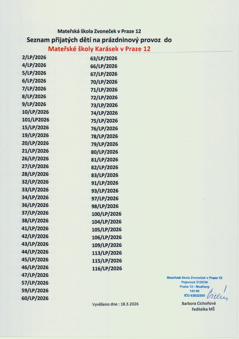 « Letní provoz 2026