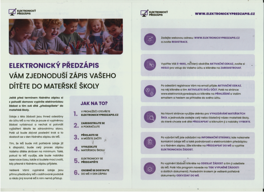 pro usnadnění a urychlení zápisu Vašeho dítěte do naší mateřské školy